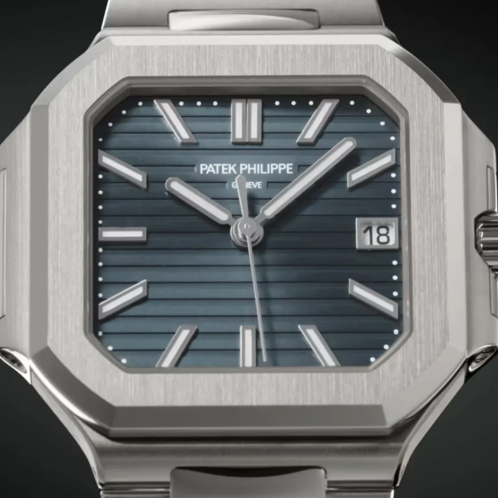 The Patek Philippe Cubitus Ref. 7128/1G-001 refines the bold, square-with-rounded-corners silhouette of the Cubitus line into a more wearable medium size. Crafted in 18K white gold with an integrated bracelet and a textured blue-gray dial, it blends modern sport-chic character with Patek Philippe’s meticulous finishing.